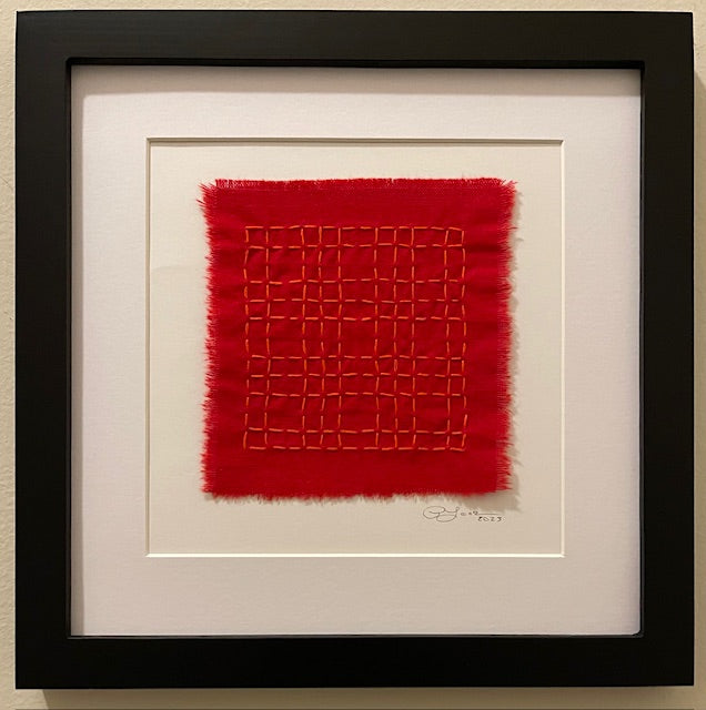 I used bright red thread on a bright red fabric to embroider this plaid design in a technique known as Sashiko.